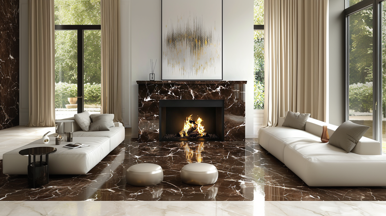 Crafted from solid natural marble, this fireplace exudes timeless sophistication with its striking veining and polished finish. Heat-resistant and durable, it serves as a majestic centerpiece for living rooms or grand halls, blending classic charm with modern functionality. Customizable in sizes and marble varieties like Calacatta or Nero Marquina.